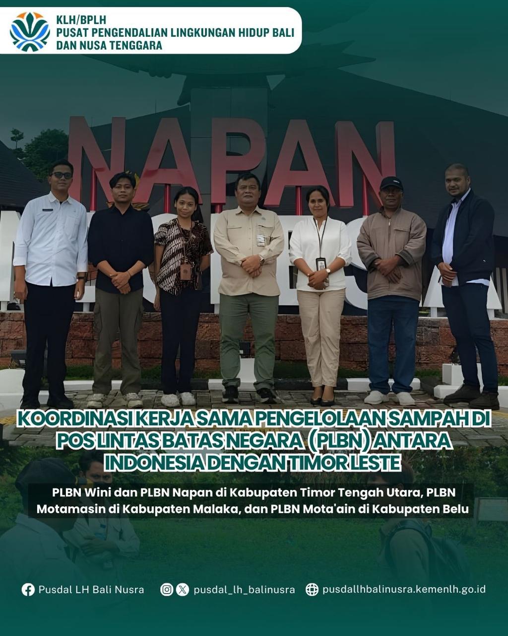 Penguatan Pengelolaan Sampah di PLBN NTT Pusdal LH Bali Nusra berkolaborasi dengan Dinas Lingkungan Hidup (DLH) kabupaten setempat untuk memperkuat pengelolaan sampah yang terintegrasi di kawasan perbatasan Indonesia–Timor Leste pada periode Januari–Februari 2026.